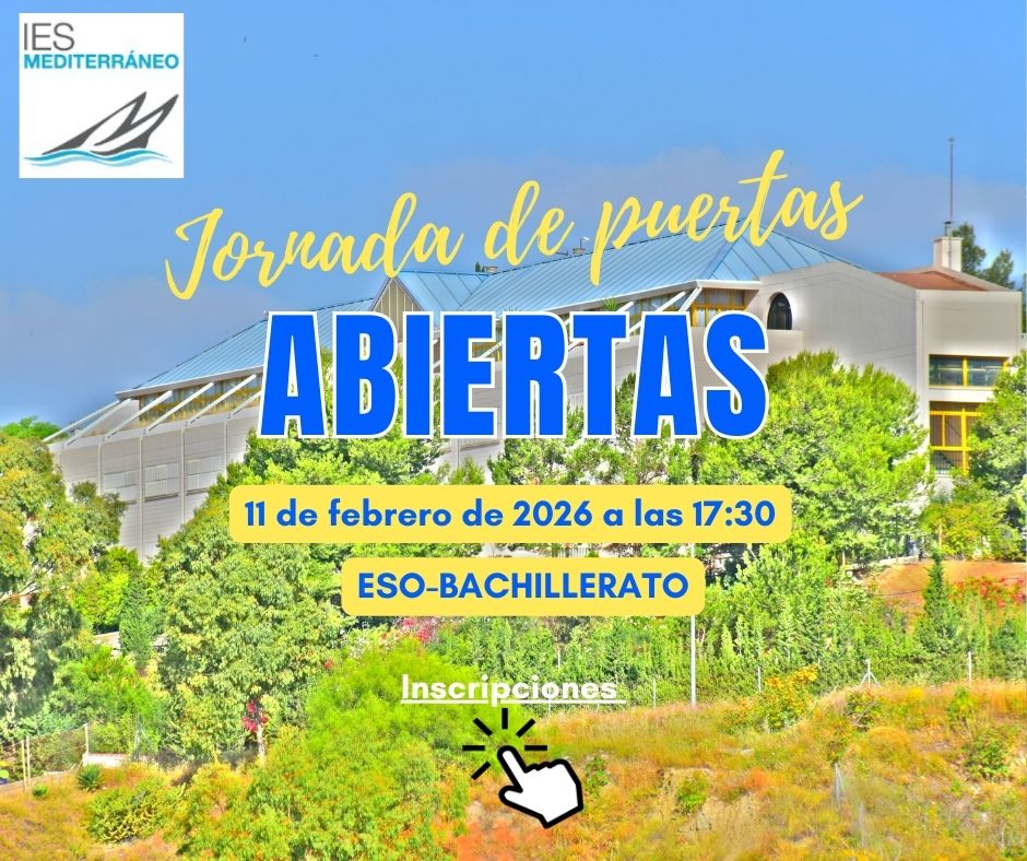 - Puede contactar con nosotros llamando al número 616 28 49 12 en horario de 09.30 a 13:30 h., en el nº 951 29 89 37 (Conserjería) o en info@iesmediterraneomalaga.com